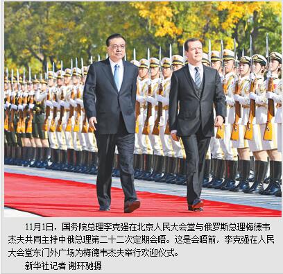 李克强与俄罗斯总理梅德韦杰夫共同主持中俄总理第二十二次定期会晤时强调