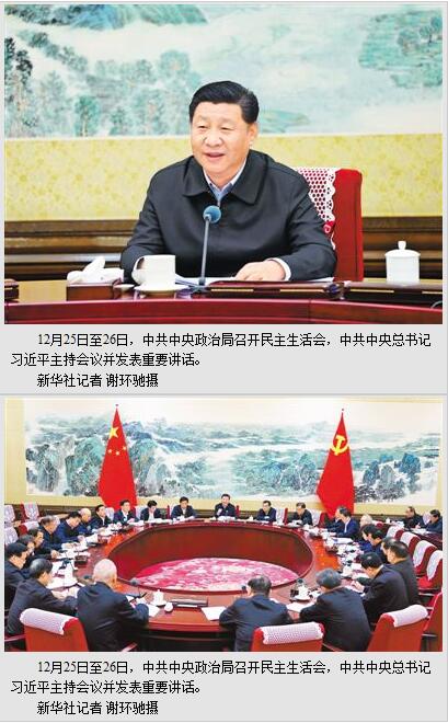 新华社北京12月26日电 中共中央政治局于12月25日至26日召开民主生活会,以认真学习领会习近平新时代中国特色社会主义思想、坚定维护以习近平同志为核心的党中央权威和集中统一领导、全面贯彻落实党的十九大各项决策部署为主题,重点对照《中共中央政治局关于加强和维护党中央集中统一领导的若干规定》《中共中央政治局贯彻落实中央八项规定实施细则》,联系中央政治局工作,联系带头执行中央八项规定的实际,联系狠抓党的十九大决策部署的实际,进行自我检查、党性分析,开展批评和自我批评。