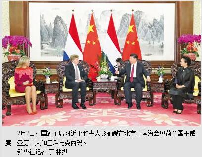 新华社北京2月7日电 (记者侯丽军)国家主席习近平和夫人彭丽媛7日在中南海会见荷兰国王威廉—亚历山大和王后马克西玛。