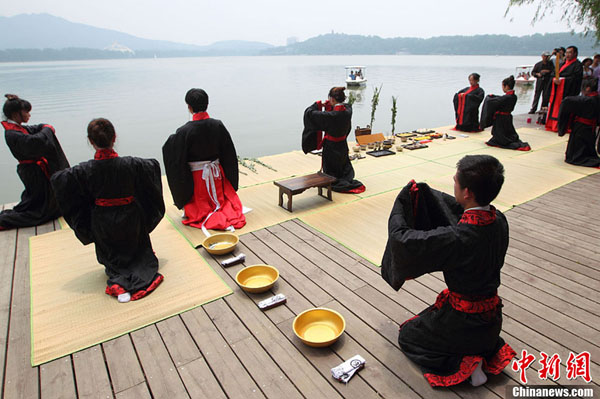南京年轻人着汉服行古礼祭屈原迎端午