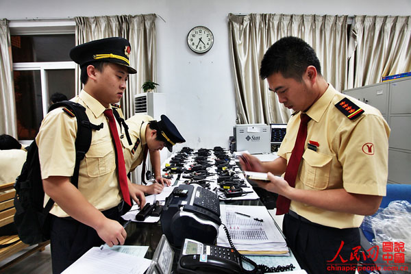 四点三十五分,书写完毕,谭海涛将手机关机,将司机手册给派班室负责人检查,检查合格过后,负责人会把钥匙、对讲机、行调电台、对讲机备用电池、时刻表、状态卡(上有车辆位置、股道、车底编码和停放处信息)交给司机。