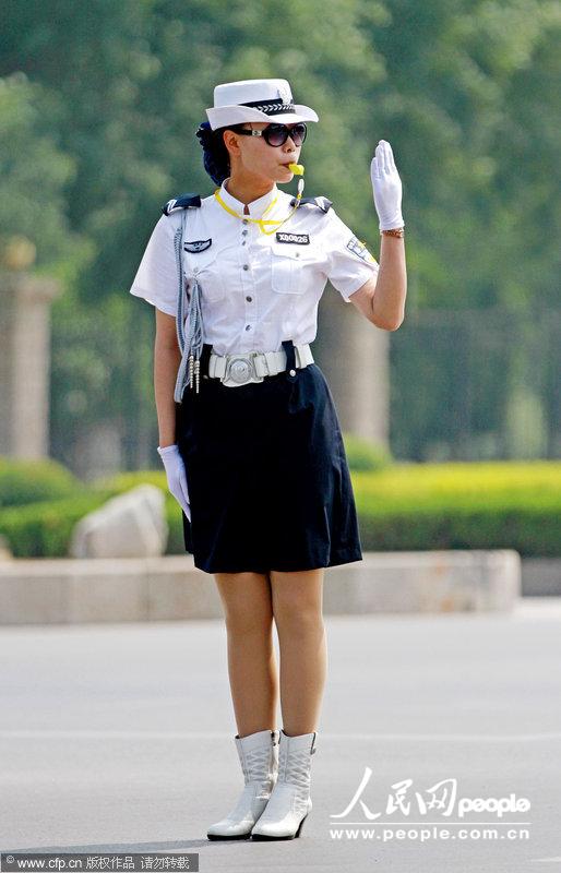 河南女协警换夏装 及膝短裙配白靴似空姐
