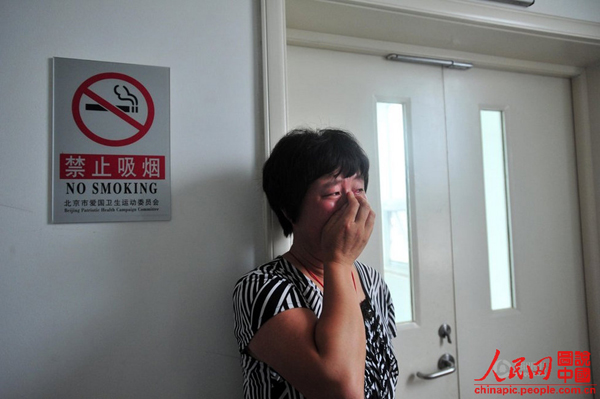 藏獒主人代女士见到记者时放声大哭。她说,当初是为了看羊群才养的藏獒,没想到它会伤到人。她说,现在咬人的藏獒已经被处理了,他们一家也会对楠楠负责,但是他们家也没什么积蓄,这几天来为孩子治病已经花费两万多块钱,不知道还能支撑多久。代女士希望,社会上的好心人能伸把手,帮帮他们。图为藏獒的主人守在医院,痛哭流涕。