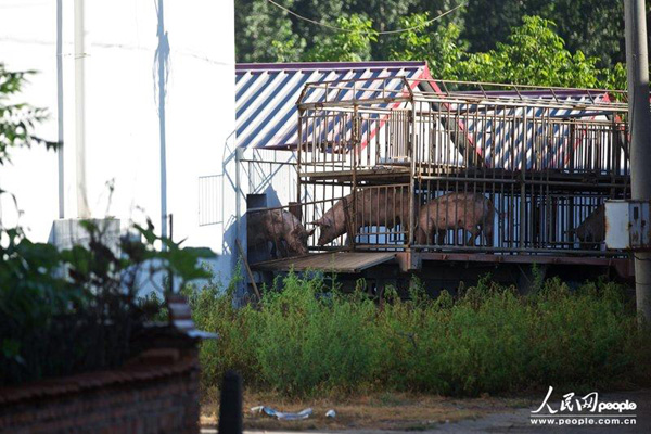 下午1点,“京AL”整车的猪都被灌完了水,司机将车疾驶出院。