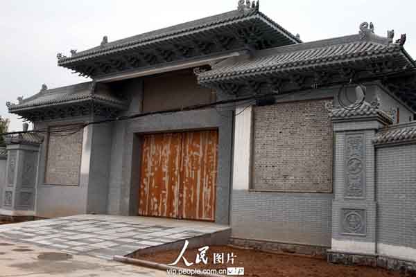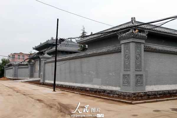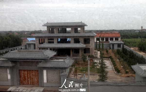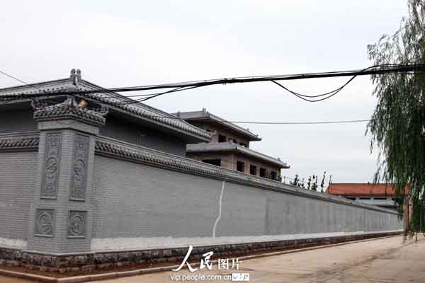 2013年8月28日,拍摄的在山西稷山县翟店镇政府后面建好的八亩豪宅。据了解,任老板建别墅全镇人都知道,其在临汾经营煤矿,当地百姓说,人家的院子可大了,在全运城可能都没有,该豪宅,青灰色的仿古围墙,高有一丈多,长有近百米,很是气派,院中央的仿古楼房主体已经建好,周边的绿化已经基本成形。