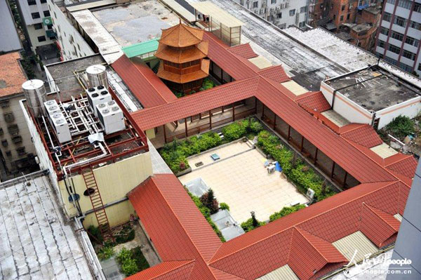 2013年08月30日,广西壮族自治区南宁市,近日有网友在网上发帖子,称“南宁楼顶现宫廷”,气势宏大。记者探访之后,发现该建筑是某酒店的楼顶客房,用料考究,都是原木。城管表示,该建筑2011年就开始建设。黄高/CFP