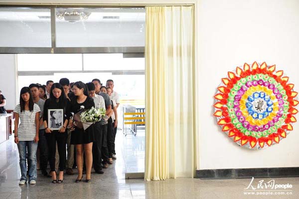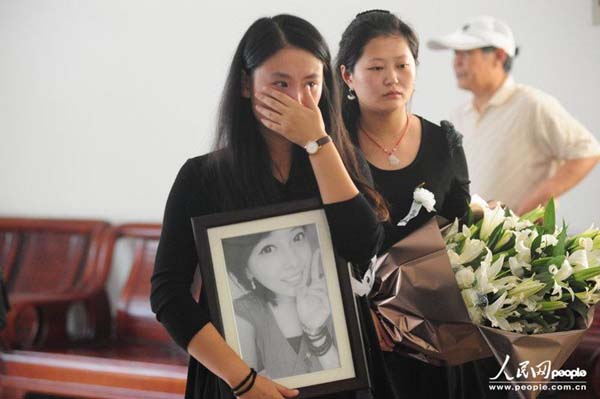 2013年9月21日上午,“最美抗癌女孩”鲁若晴的遗体告别仪式在青岛市黄岛区殡仪馆举行,鲁若晴生前的亲戚朋友以及众多自发而来的网友前来见鲁若晴最后一面。图片来源:CFP 版权作品、请勿转载