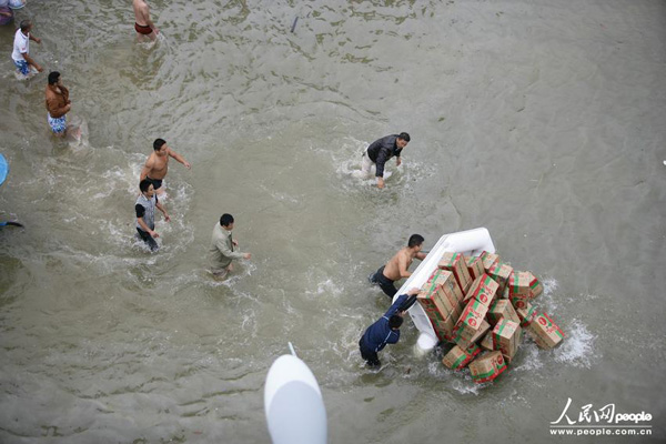 10月9日,浙江省宁波市余姚凤山街道,发放物资的志愿者与一名男子发生冲突,男子将物资船推翻,物资被民众哄抢。