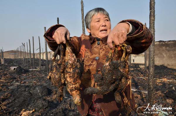 “你看看,一只只有2斤重了。”正在现场清理的钱照来老汉从灰烬中随手拿了一只被烧焦的肉鸡,掂量了一下,“马上就要出栏了,竟遇到这种倒霉事儿,真是寒心啊!”