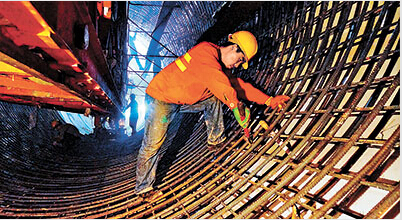 5月24日,北京市南水北调东干渠工程最后一个盾构区间顺利贯通,标志着我国南水北调中线工程北京段地下输水环路全线贯通。这条输水“巨龙”蜿蜒游走于西四环、北五环、东五环、南五环所串成的环路下方,全长107.3公里。今年汛后,这条“巨龙”将成为江水进京的主要输水渠道,为首都“解渴”。图为工人正在东干渠输水隧洞内施工。