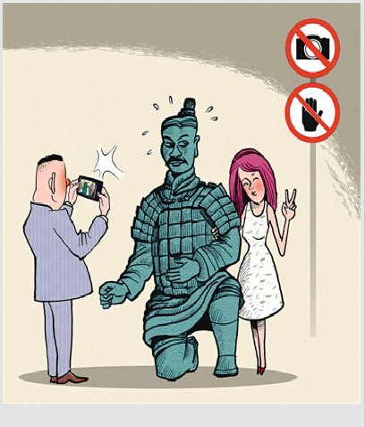但是,随意触摸珍贵文物、用闪光灯拍照、大声喧哗影响参观秩序等不文明现象也日益突出,成为博物馆管理方面的一大难题。这正是: