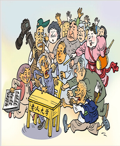 老年大学真火爆,白发也挤独木桥。