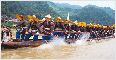 6月22日至25日,贵州台江县施洞镇和老屯乡清水江流域的苗族同胞欢度一年一度的独木龙舟节。独木龙舟节主要进行龙舟竞渡、篝火歌舞晚会、踩鼓等活动,祈求风调雨顺、五谷丰登,数万名百姓和游客参加此次节日盛会。