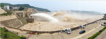 6月30日,2014年黄河小浪底调水调沙开始。巨浪翻滚,飞瀑冲天,壮丽景观吸引了来自全国各地的游人。