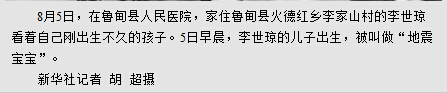 图片报道:“地震宝宝”