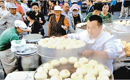 8月7日,黑龙江省黑河市市民在早市买肉包子。当日是二十四节气中的立秋,我国民间有“贴秋膘”的习俗,“以肉贴膘”,增加营养。民间还有“啃秋”的习俗,全家人围着吃瓜,寓意丰收吉祥。按照黑河市的传统习俗,这一天老百姓还要吃饺子或者包子。