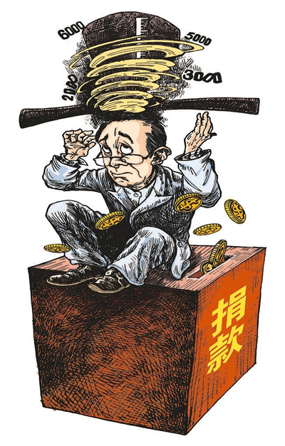 据报道,近日,广东东莞大朗镇教育局以迎接教师节为由头,发起慈善募捐活动,并向全镇机关单位、村委、企业发放了倡议书。但在教育募捐表上,居然按职务级别设置捐款标准,最低2000元。媒体呼吁,教育募捐可为,但应以自愿为原则,设置“最低消费”有违募捐本义。