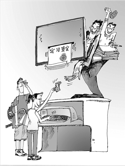 暑期接近尾声,部分商家却做起了大学生实习鉴定的生意,甚至在网上公开叫卖,宣称只需花几十元,实习单位评语、公章全部都能搞定,甚至可以“定制”重量级实习证明。对此,淘宝方面回应,此类卖家涉嫌造假。这正是: