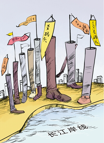 记者调查发现,在长江中下游部分地区,一些地方为了引项目、促发展,将岸线作为招商引资重要手段。港口企业和项目业主争相“圈地”“圈水”建码头,缺乏统一规划和开发利用监管。受资源分散、重复建设等影响,港口码头“吃不饱”甚至“晒太阳”现象十分普遍。
