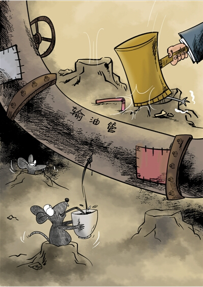 石油输送管道素有“国家能源大动脉”之称。然而,记者调查发现,在山东、甘肃等地,破坏石油管道,打孔盗油现象时有发生。不少“油耗子”团伙甚至形成了分工明确、具有黑恶势力的犯罪组织。打孔盗油,不仅可能造成原油泄漏,还可能引发爆炸事故,危害极大。