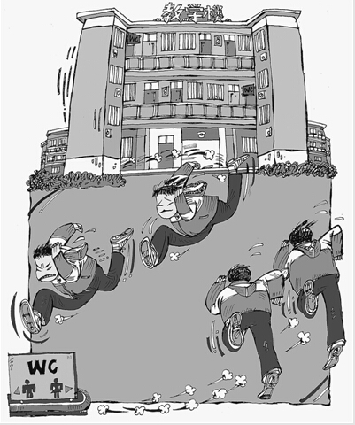 据报道,在北京郊区某小学,厕所分教师用的和学生用的两种。学生用的厕所,位于教学楼外的操场边上,路程较远。在不少郊区学校,由于财政资金投入不足,卫生条件跟不上,学生课间上厕所,必须要跑很长距离,一到冬天或刮风下雨天气更是十分不便。这一问题,亟待解决。