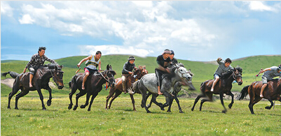 6月22日,四川省红原县安曲镇夺龙村举行了一年一度的原生态赛马节,全村70多匹良马在草原上飞驰狂奔。伴随着骏马的嘶鸣,村民们的喝彩声,整个草原变成了一片欢乐的海洋。