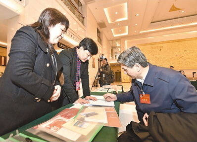 3月1日,在北京会议中心,参加全国两会的政协委员陆续抵达北京、到达驻地,开始办理报到手续。