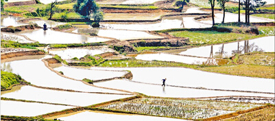 4月5日,江西省永丰县白水门灌区,注水的稻田如诗如画。进入4月春耕时节,永丰县广大农民忙于整理耕地,水面如镜的田块,线条分明的田埂,辛勤劳作的人们,构成一幅秀美的春耕图。