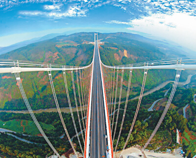 亚洲山区跨径最大的钢箱梁悬索桥