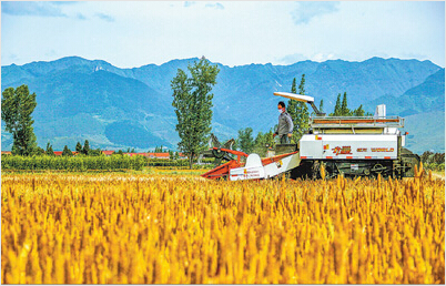 眼下,正是陕南小麦、油菜的收获季节,陕西省汉中市汉台区农机部门积极联系江苏、四川等地900余台农业机械,利用晴好天气,帮助农民抢收,确保颗粒归仓。图为24日,汉台区村民操作农机抢收夏粮。