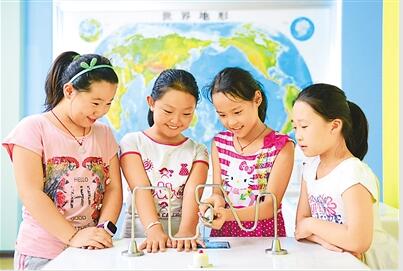 暑假来临,河北省邢台市桥东区青少年科技馆推出“乐享科技嘉年华”暑期系列公益科普实践活动,丰富青少年暑期生活。图为7月10日,小朋友在科技馆进行科学趣味实验。