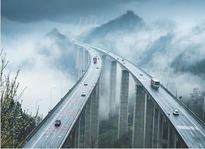 云雾缭绕悬索桥