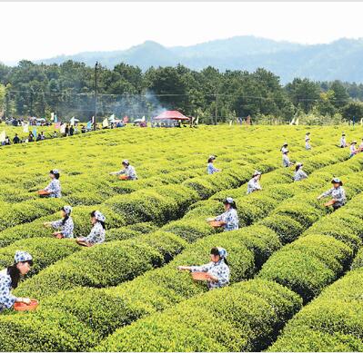 4月15日,江西省德兴市香屯千亩生态茶园迎来忙碌采摘期,茶农赶在谷雨前采摘优质茶叶。