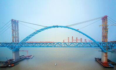10月22日,世界最大跨度公铁两用钢拱桥——沪通长江大桥天生港专用航道桥主拱合龙。该桥主拱在桥面上搭设支架逐节拼装,拼装长度达320米。沪通长江大桥贯通后,江苏南通到上海将实现火车1小时直达。