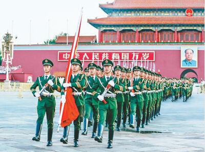 步履铿锵,战歌嘹亮。他们用一举一动、一言一行,诠释着中华人民共和国神圣的尊严,让五星红旗映衬下的天安门广场更加亮丽和谐。