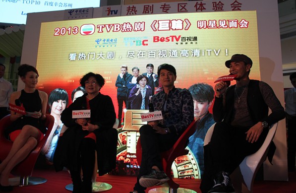 10月30日,由百视通和江苏省电信共同主办的“2013TVB热剧《巨轮》明星见面会”在苏州园区印象城火热开启,来自香港TVB《巨轮》剧组的三位主角亲临现场,与广大苏州的电视剧迷们进行了一次亲密接触。