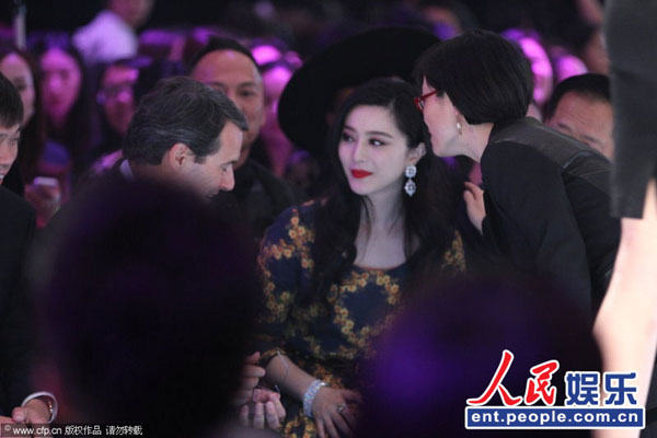 范冰冰遭老外递名片偷瞄 与邻座男嘉宾热聊