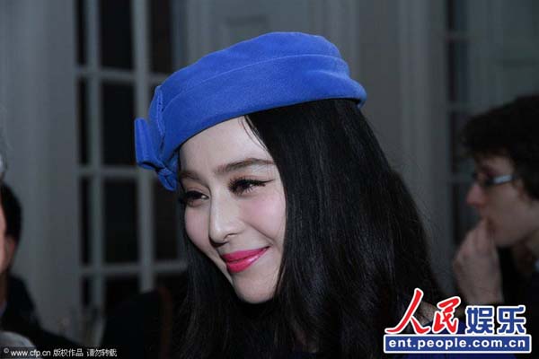 范冰冰戴抢眼蓝帽与人亲切交谈 黄奕秀蛮腰撑场