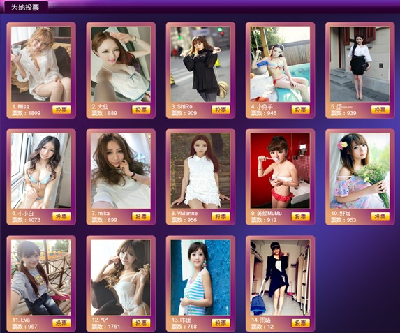 其中CF女神孙亦文、最美Showgirl陈潇最引人注目,两人票数不相上下竞争尤为激烈,海选关键时期两人更是先后自曝大尺度私房照为自己上位女主拉票。