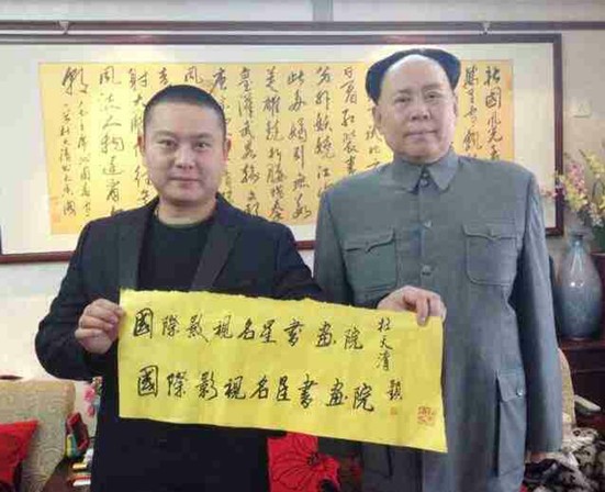 (图为:毛主席扮演者杜天清为国际影视明星书画院题院名并担任本院院长)