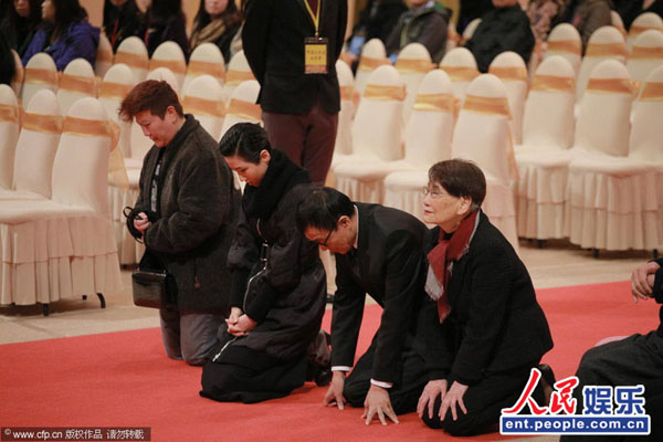 2014年1月17日讯,香港,1月17日,电影大亨邵逸夫爵士追思会。约十时许政商界人仕、中联办主任等陆续到场,刘家昌老师张玉珊结伴到场,续后演员钟镇涛、平机会主席林唤光先后到场。