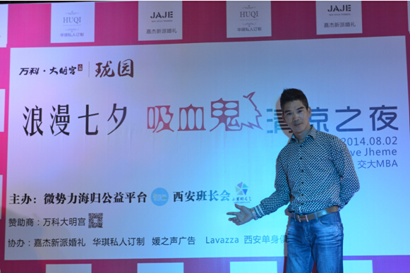 8月2日,农历七月初七,古老的历史,永恒的传说,又是中国传统的七夕情人节,“七月七日长生殿,夜半无人私语时,在天愿做比翼鸟,在地愿为连理枝”。西安依旧是高温,比西安的高温更加炙热的,是西安南门外长安国际LAVAZZA生活馆中举行的一场单身男女的浪漫约会交友派对——“吸血鬼清凉之夜”。此次派对由万科大明宫冠名赞助,西安班长会旗下的西安单身俱乐部和微势力海归公益平台联合主办,西安媛之声广告有限公司、新居时代协办,旨在让一对对优秀的单身男女沐浴月老的恩赐,以促成一段段佳话。