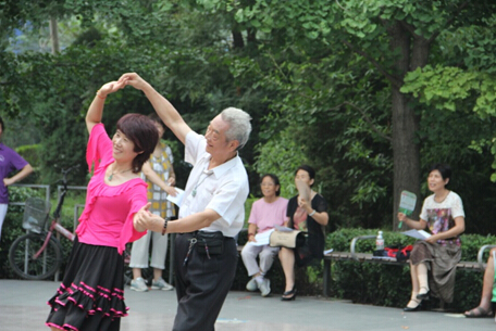 朝阳区安贞社区公园,首届“重阳杯”全国中老年广场舞大赛北京赛区新闻发布会暨第一场海选赛正在这里紧锣密鼓举行,从华严北里舞蹈队表演的爱国歌曲《我们的生活充满阳光》交谊舞,到回龙观龙锦舞蹈队表演的广为传唱的《最炫民族风》广场舞,再到奥之光舞蹈队表演的时尚服装走秀,广场舞大妈们正在用广场舞的形式跳出属于她们的最唯美的爱情童话。
