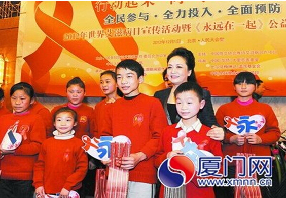 "让我们把爱献给受艾滋病影响的孩子们!"——这是世界卫生组织艾滋病防治亲善大使、中国预防艾滋病宣传员彭丽媛女士所倡导的精神。在10月20日举行的"2014年度艾滋病学术交流大会"上,彭丽媛大使再次表示: 艾滋病是全球公共卫生领域重大挑战之一,还有许多工作要做,今后我愿继续履行好预防艾滋病宣传员和艾滋病防治亲善大使职责,促进中国和国际社会艾滋病防治合作,为全球抗击艾滋病工作贡献一份力量。彭大使一直践行自己的诺言,并致力艾滋孤儿的关爱和扶助,经常去探望艾滋孤儿,全国的艾滋孤儿都亲切地称呼她"彭妈妈"。