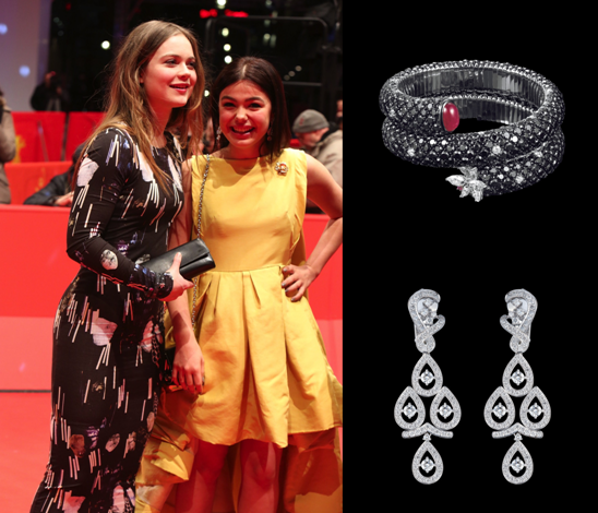 欧洲新星Abbey Hoes和Hera Hilmar佩戴通灵珠宝高级定制STARLET(红毯)系列钻饰亮相柏林