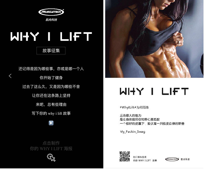 原来,6月1日-6月18日肌肉科技在微博、官方微信公众号等全网各渠道上发起了话题#WHY I LIFT#你为何而练?这个话题在健身圈引起了不小的轰动。