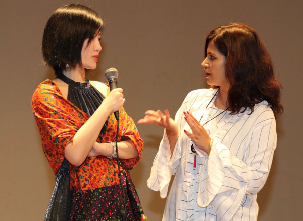 导演、编剧兼主演的李珈西、制片人岳冠廷与影人交流