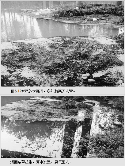 不久前听朋友说,如今的大寨河,全是黑水,发霉发臭,河岸有几处坍塌,堵了河道。5月4日上午,我特意来到大寨河。真是不见不知道,一见吓一跳。如今的大寨河,水面只有三四米宽,河水浑浊不清,杂物、垃圾占据河道。