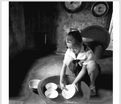趁妹妹睡着,荣慧把一大桶衣服洗好晾晒。随后,自己坐在床前打起盹来。