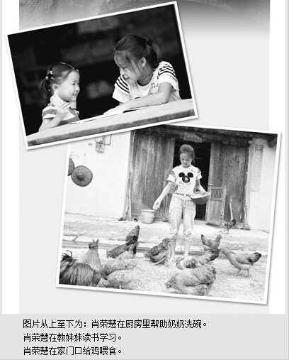在荣慧4岁时,她爸爸妈妈就远赴浙江务工。平常,荣慧和妹妹跟着年过花甲的爷爷奶奶生活。庄稼人一辈子有忙不完的活。尽管已经70多岁了,荣慧的爷爷奶奶还是天天下地干农活。像同村的小伙伴一样,荣慧和妹妹早早就学会了“自我照顾”。
